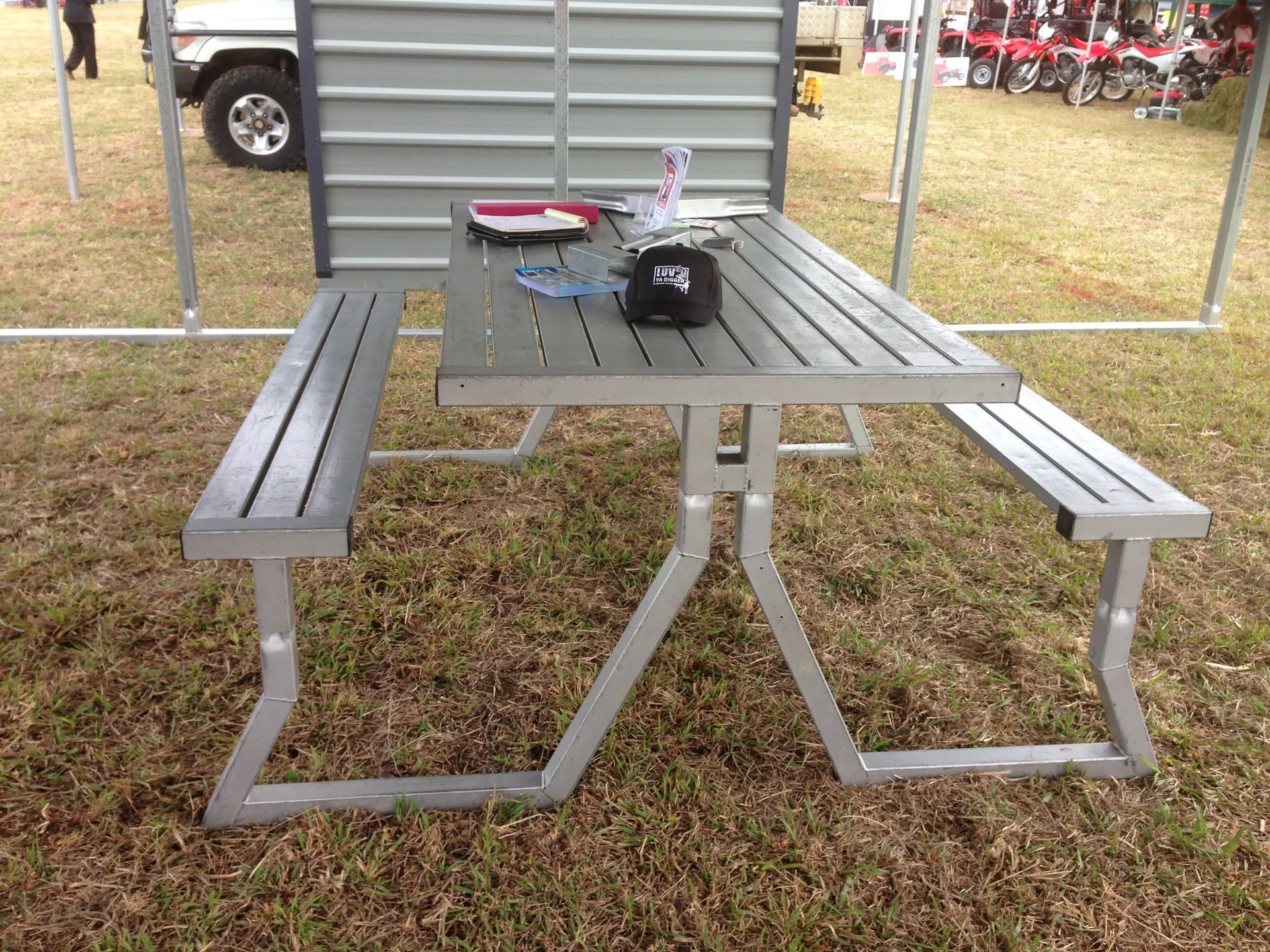 - The table top and seats slip fit together using our unique swaging system as with all Shady Characters products. This enables the Picnic Tables to be flat packed and completely portable.